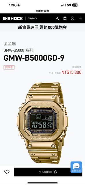 標題[買錶] 徵 CASIO G-SHOCK小方塊GMW-B5000GD-9