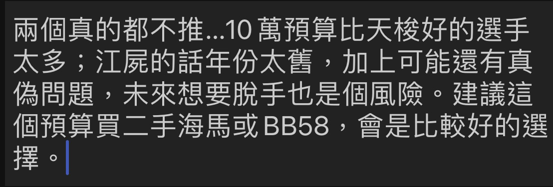 推 harland: 小弟當初也是十萬預算,有點尷尬,建議捏上海馬,或是先 09/28 21:28