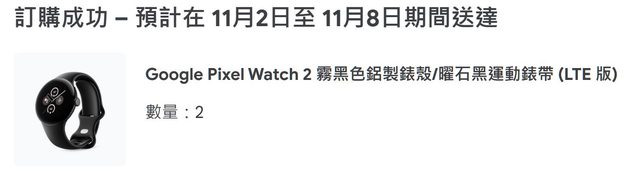 預計在 11月2日至 11月8日期間到貨,收到後可立刻後續安排