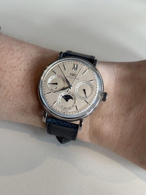 猶記小時候第一次看到IWC這個牌子,是爸爸的葡萄牙南北月相萬年曆,當時還是流行大錶的年代,我就被盤面的佈局深深吸引,沒想到有天也能擁有自己的IWC萬年曆,而且是剛剛好的錶徑,戴上手就拿不下來了,其他的錶都被我冷落了哈哈。