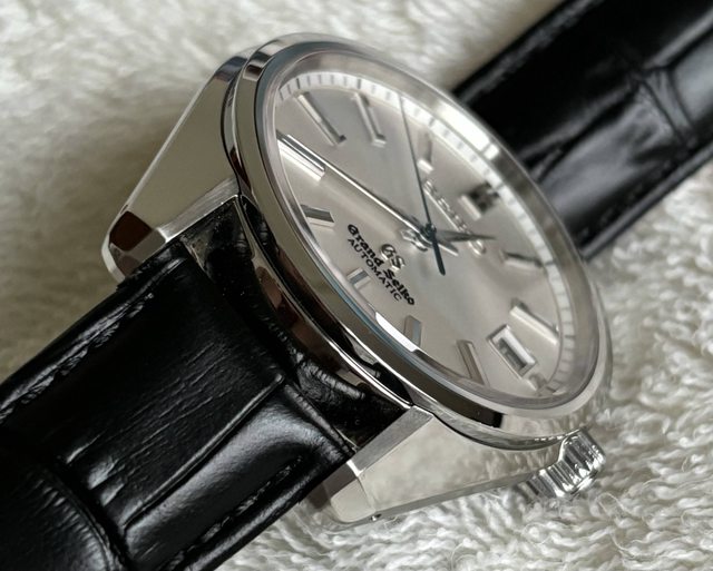 此外,多切面的時標也是GS Seiko style的特色之一,在此銀白色的面盤上搭配的是全鏡