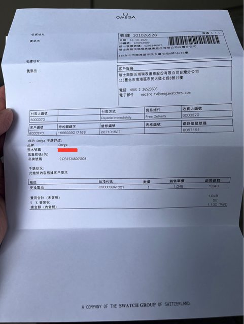 此錶於10/16至原廠更新電池,單據附上
