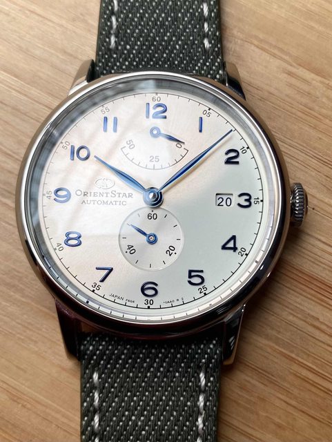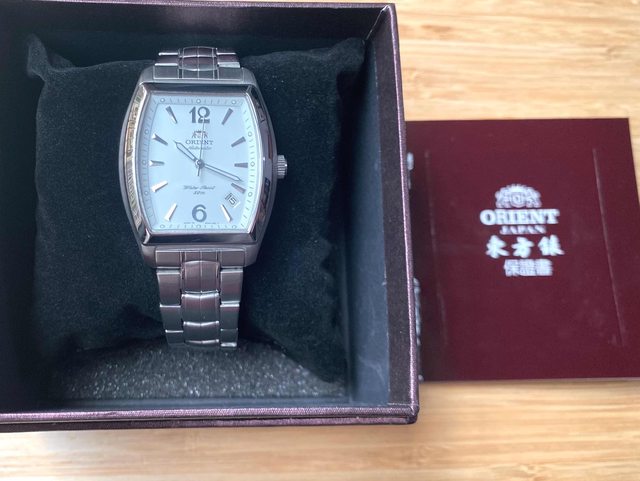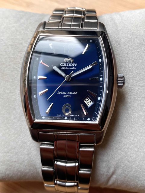 商品:Orient東方絕版酒桶藍面鋼帶錶