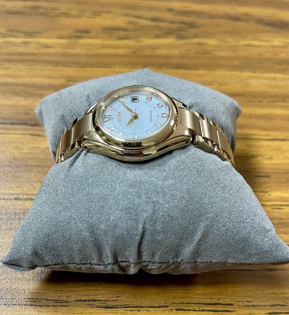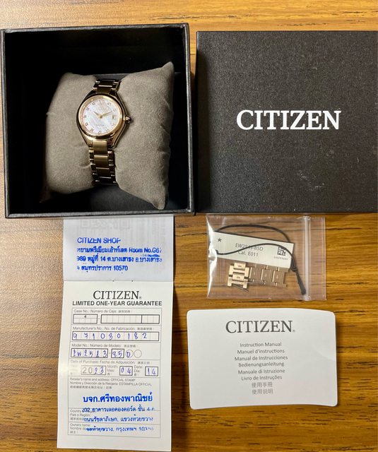 備註:泰國旅遊購買。優雅珍珠貝錶盤,10顆施華洛世奇水晶元件裝飾。