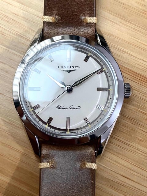 銀箭系列奶油面皮帶機械錶