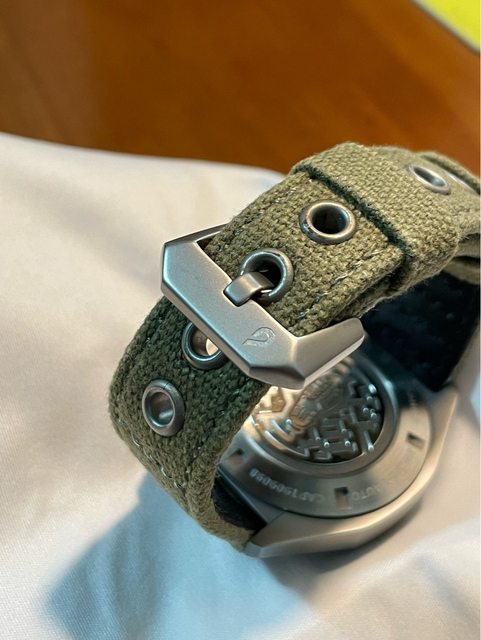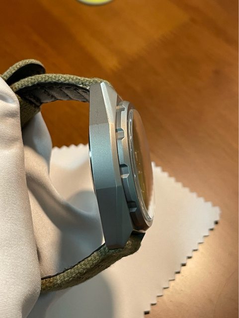 前手是2021/7自網路全新購入,已過保,平時配戴使用原廠布質錶帶有使用痕跡,