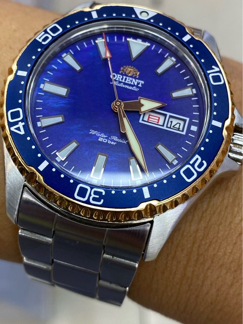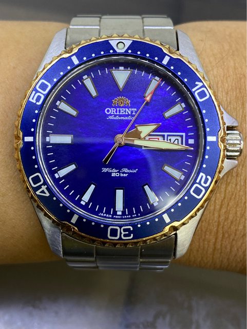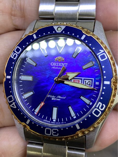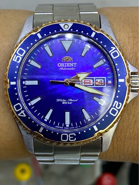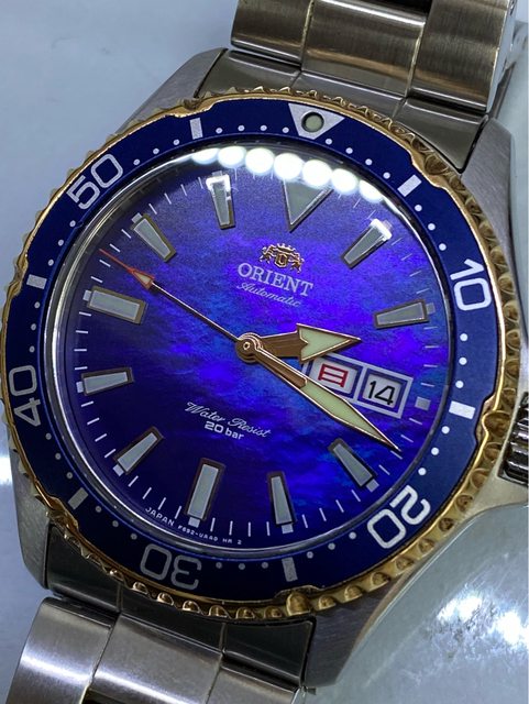 —————————————————- 匯款後店到店,無面交服務 【商品名稱】Orient Mako 母貝面盤 【商品價格】已售出)5560元(含店到 【新舊程度】如圖 【附件】單錶乙顆,原廠錶帶 ————————————————— 型號RN-AA0005A 珍珠母貝面盤款 當年東方限量2000顆的潛水錶 這顆是更罕見日本國內款 (限量300顆) 星期為日曜&英文星期顯示 背蓋有限量編號&Made in japan 藍色漸層珍珠母貝面盤 錶徑約41.8mm 走時正常 日期快調正常 藍寶石水晶鏡面