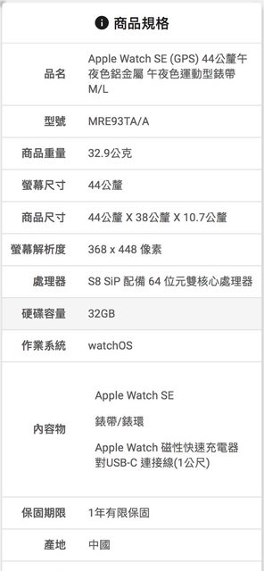 [型號] Apple Watch SE2 (GPS) 44公釐午夜色運動型錶帶