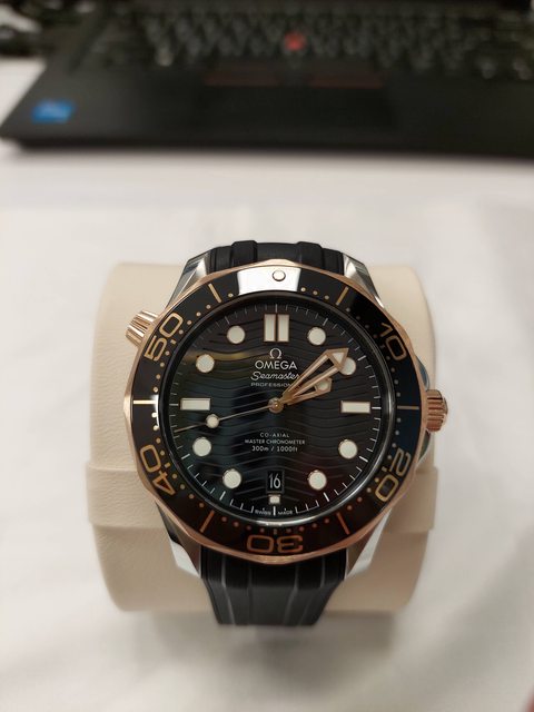 就像從第一隻的Omega海馬 雖然也看了藍白綠面跟藍金面 最終還是選擇了玫瑰半金面