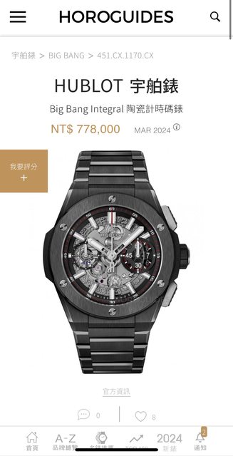 手錶型號:Big Bang Integral 陶瓷計時碼錶