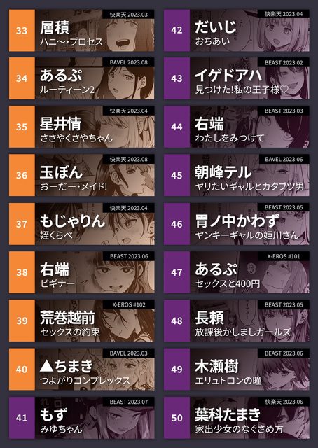 這次進榜篇數最多的則是スミヤ老師,半年內畫三篇還都要有一定好評可真不簡單