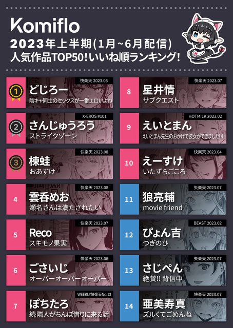 標題[洽特] komiflo 23年上半年按讚數排行榜