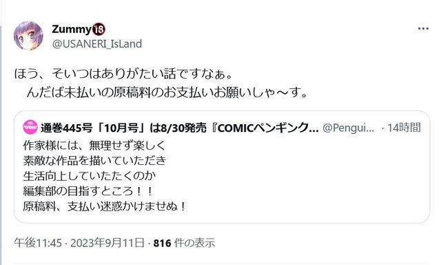 編輯部:支付稿費這部分絕不會造成漫畫家們的困擾