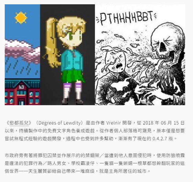 《慾都孤兒》(Degrees of Lewdity)是由作者 Vrelnir 開發,從 2018 年 06 月 15