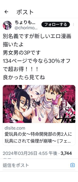 以為會去GOT的ちょりもっき老師,休息一陣子後在がるまに出新作