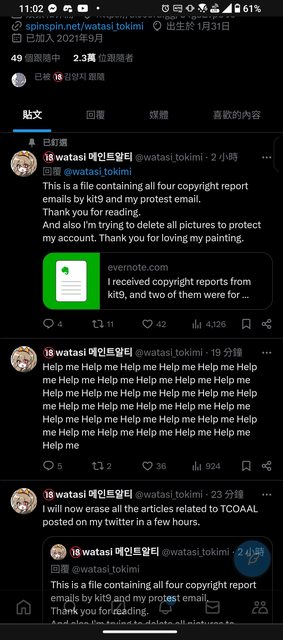 稍微用機翻看了一下,似乎決定要在幾個小時內將他畫的有關tcoaal的創作都刪除的樣子,有想要保留的粉絲動作要快