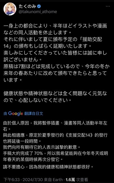 原訂夏Comic Market要賣的援助交配14因老師個人因素會延一或兩次摳米給