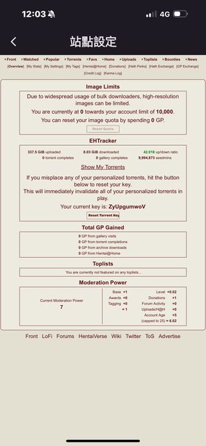 各位好,昨天日常用JHenTai看本時有跳出畫廊對使用者拒絕訪問訊息,查了一下才發現免費的5000配額剛好用完了,爬文做了一下E站捐贈先拿一個銅級權限擴到10000配額,不過App這邊登出登入後,還是顯示配額5000,點選消耗GP刷新也沒有反應