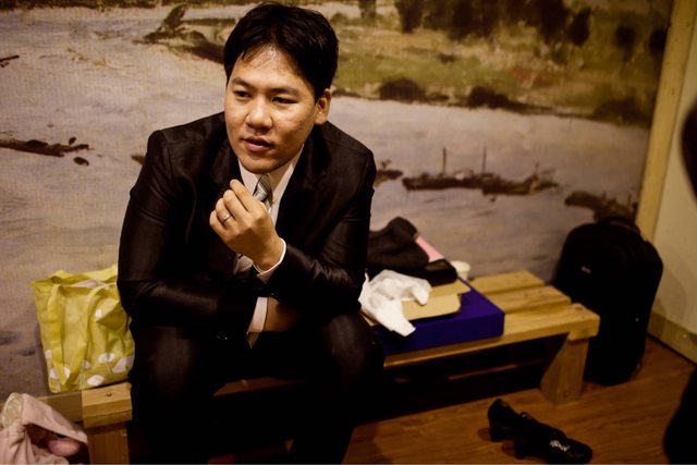 過,過了三週天天在酒店可汗大點兵的辛苦工作,居然偷渡回台跟前妻結婚。