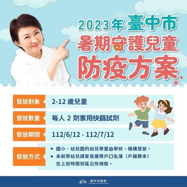好康主旨:台中2-12歲免費領2劑快篩