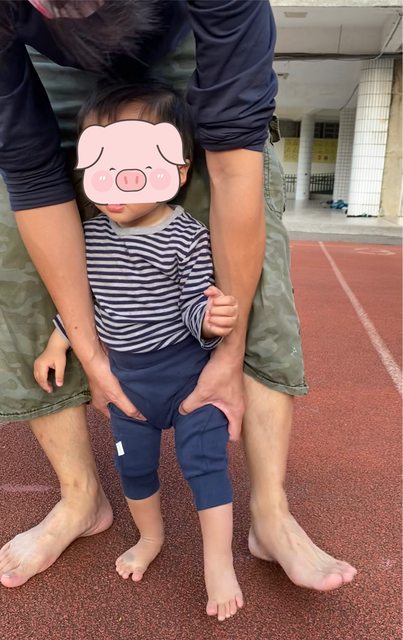 直到保姆提醒我們,小朋友的腳應該要可以踩平而不是一直踮高高,於是在雙寶十個月大