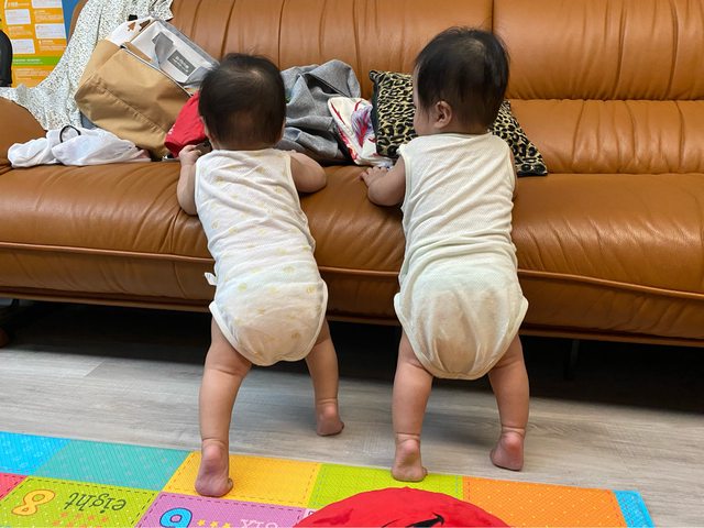 雙寶大約矯齡八個月開始扶站,雙腳都會墊腳,因為是第一胎以為這是學習的一部分又或