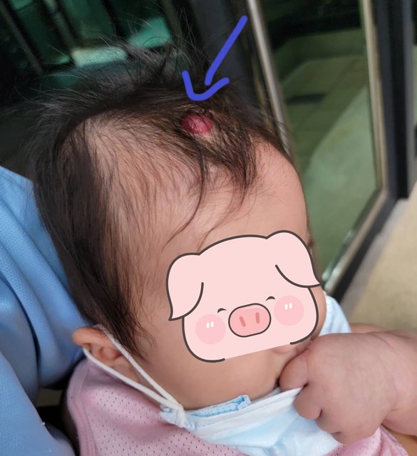 隨著寶寶越來越大,弟弟的眼皮血管瘤沒有變化,但哥哥頭上的變更大而且還凸起