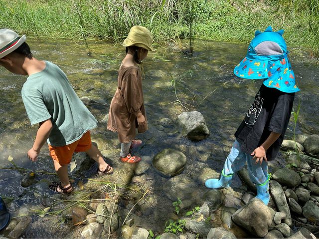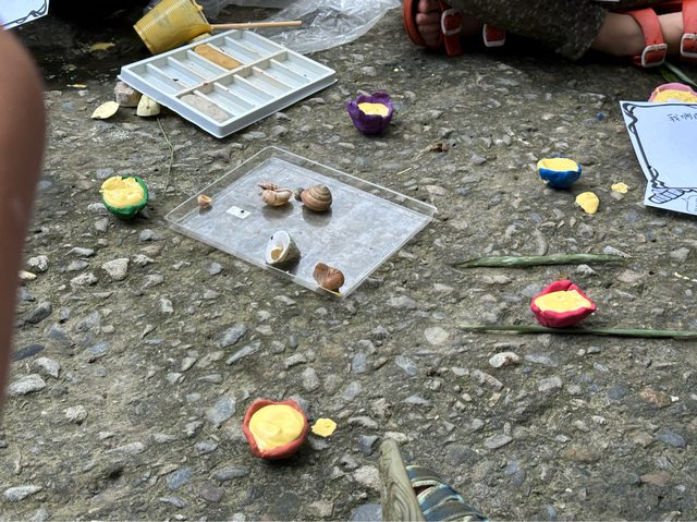 就讓孩子在溪邊撿化石,跟老師分享。