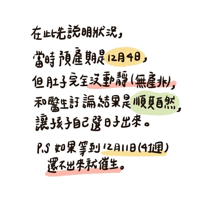 因為當時過預產期時,媽媽我本人已經信心喊話好幾天就是沒動靜(不出來就是不出來)