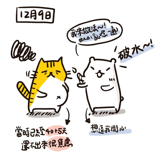 但萬萬沒想到過了預產期還不肯出來,然後在12月9日當天傍晚破水,雖然是隔天出生,