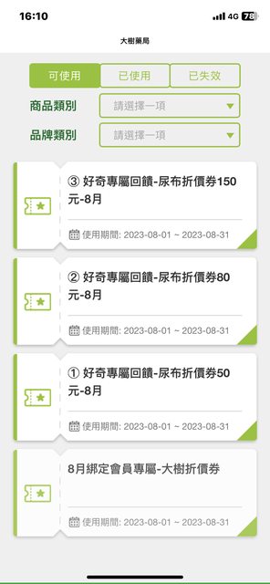 第一張照片是大樹官方LINE 8月好奇折價券