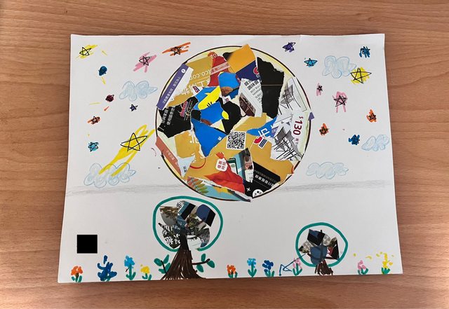材料:圖畫紙、廣告單、彩色筆、膠水