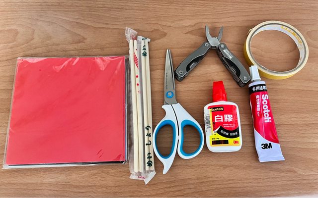 一張、棉花、白膠、布膠(也可以使用雙面膠)、尖嘴鉗、剪刀、強力接著劑。