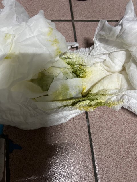 (文內含可能令人反感或噁心圖片,請慎閱) 我家寶貝目前一歲兩個月,上周五開始發生發燒及拉肚子的情況,已經去看過醫生拿藥吃 了 以下這是昨天的糞便圖片,有綠便的情況 https://i.imgur.com/oiSo7Z4.jpg