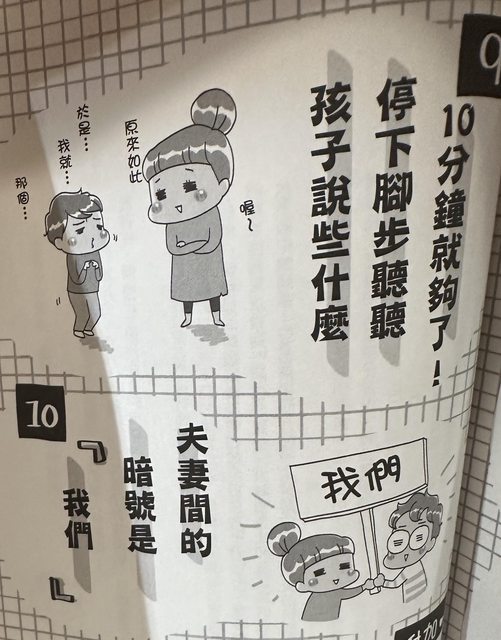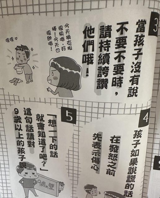 以漫畫呈現起承轉合的教養論述。