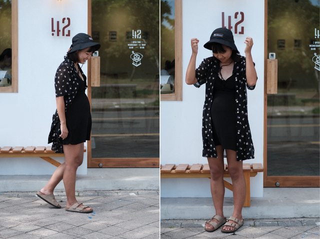 黑洋裝是H&M(很便宜399之類的),碎花罩衫是媽媽年輕時穿的,30週