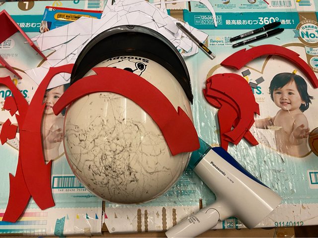 (6)全部黏起來後,頭盔大概看起來就像這樣: