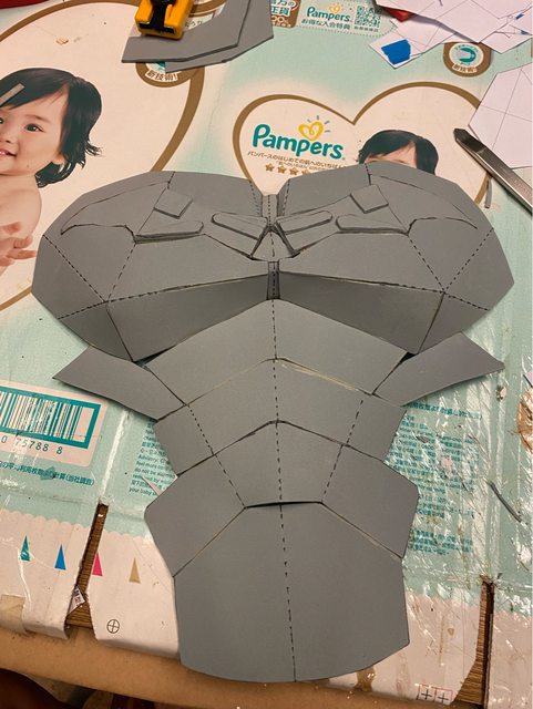 只好以買來的服裝為基礎,再自己做裝甲配件補上。