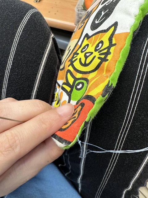 我會多縫幾針到更下面避免布書被我剪開的線又往下繼續裂開