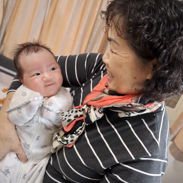 ,洗完澡,第一件事就是弄孫(抱我女兒)哈哈哈!晚上女兒大哭,阿姨又會馬上跑過來