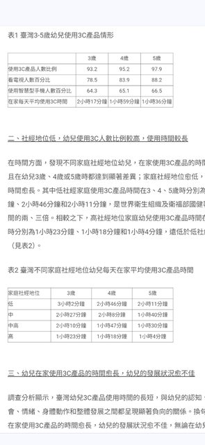 3-5歲幼兒使用手機比率60%以上,社經地位越高使用時間越短。