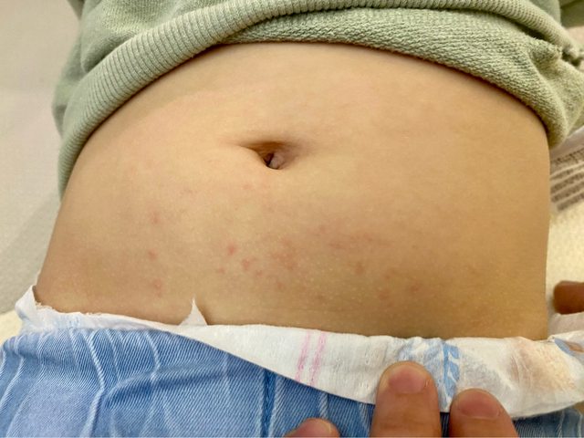 想問一下大家有沒有碰過小孩肚臍下週長了小紅疹?看不出來有沒有水泡?以前都沒有長