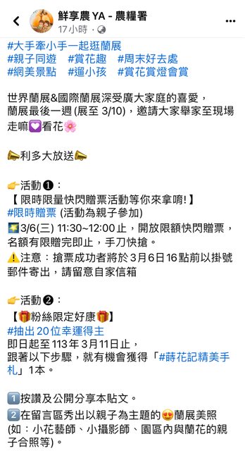 標題[好康] 分享3/6限時限量臺南蘭展親子贈票