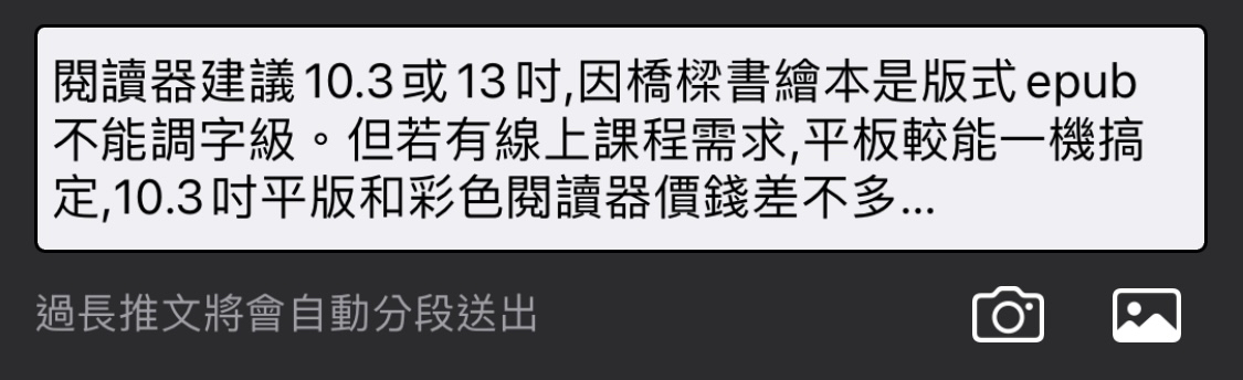 推 hsiaoching : 閱讀器建議10.3存或13吋, 因繪本橋樑書是版式epub, 03/24 08:38