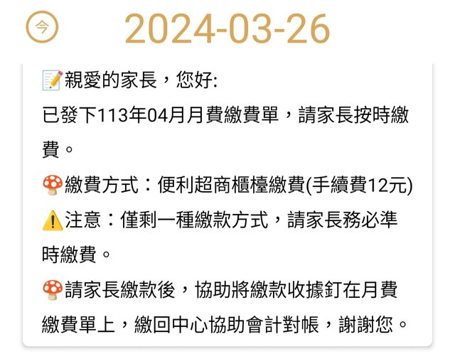 標題Re: [寶寶] 請問有送公托這個月的繳費?