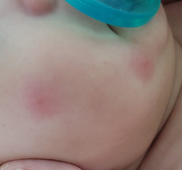 昨天早上發現6個月寶寶臉上有兩個大紅點
