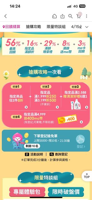 → betty3252005: 滿1288送10%mo幣(3000名):實際是每日100名。 04/15 14:47