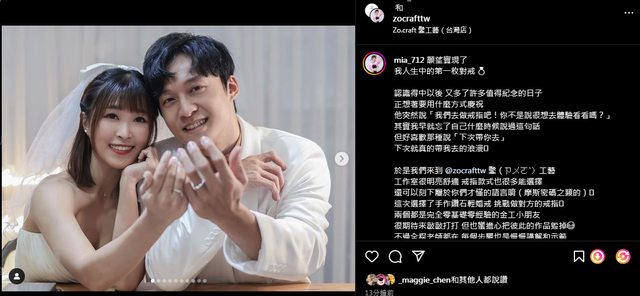 推 SONY3310: 還沒結婚啦,但Mia應該算半公開之前貼文還限動就PO合照 01/17 20:32