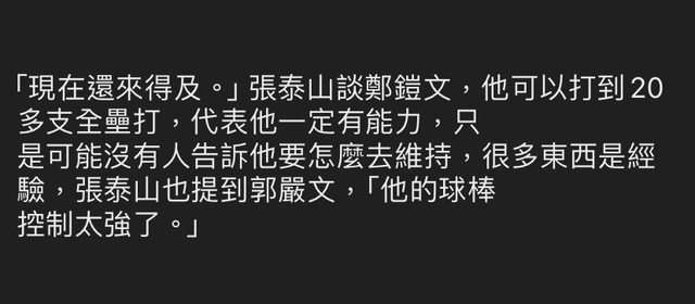 可以藉由鄭鎧文來驗證泰山調打擊有沒有料了嗎