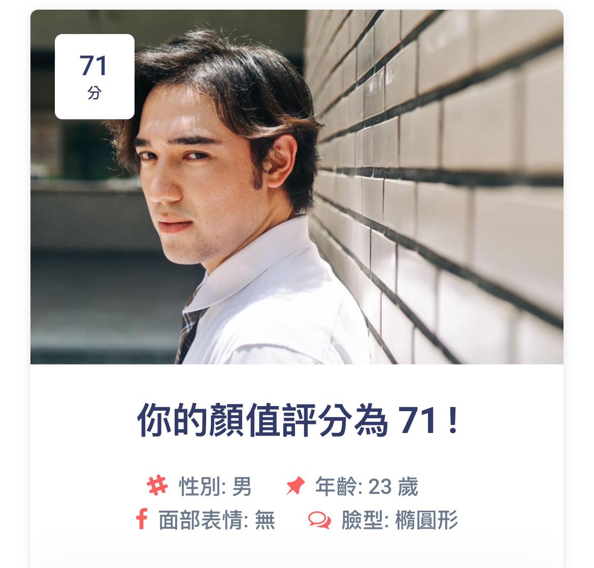 剛剛試了這個線上顏值測試